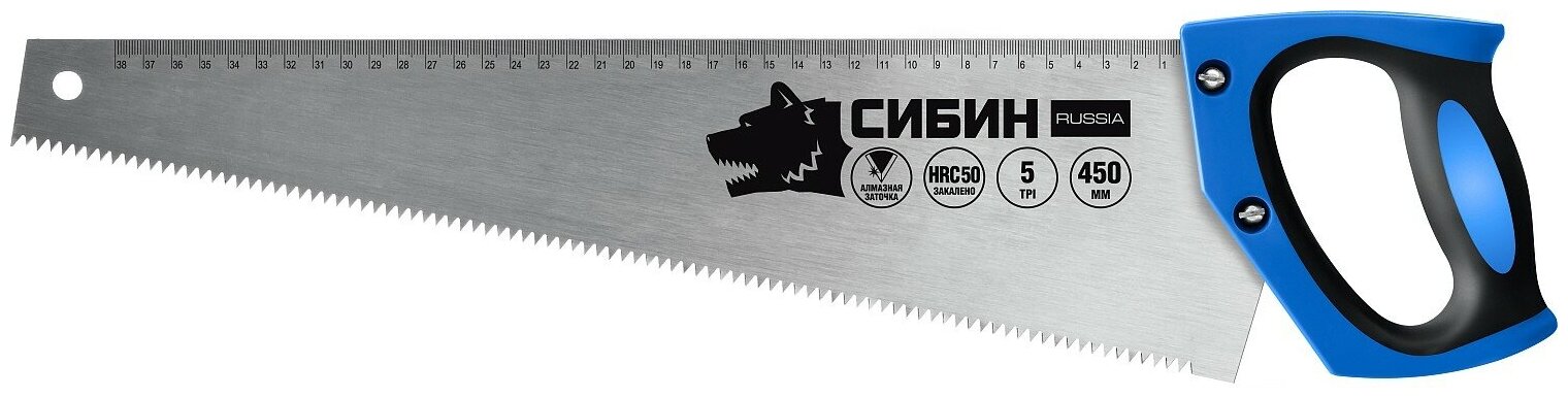 Ножовка по дереву (пила) 450 мм, шаг 5 TPI (4,5 мм), СИБИН информация:
