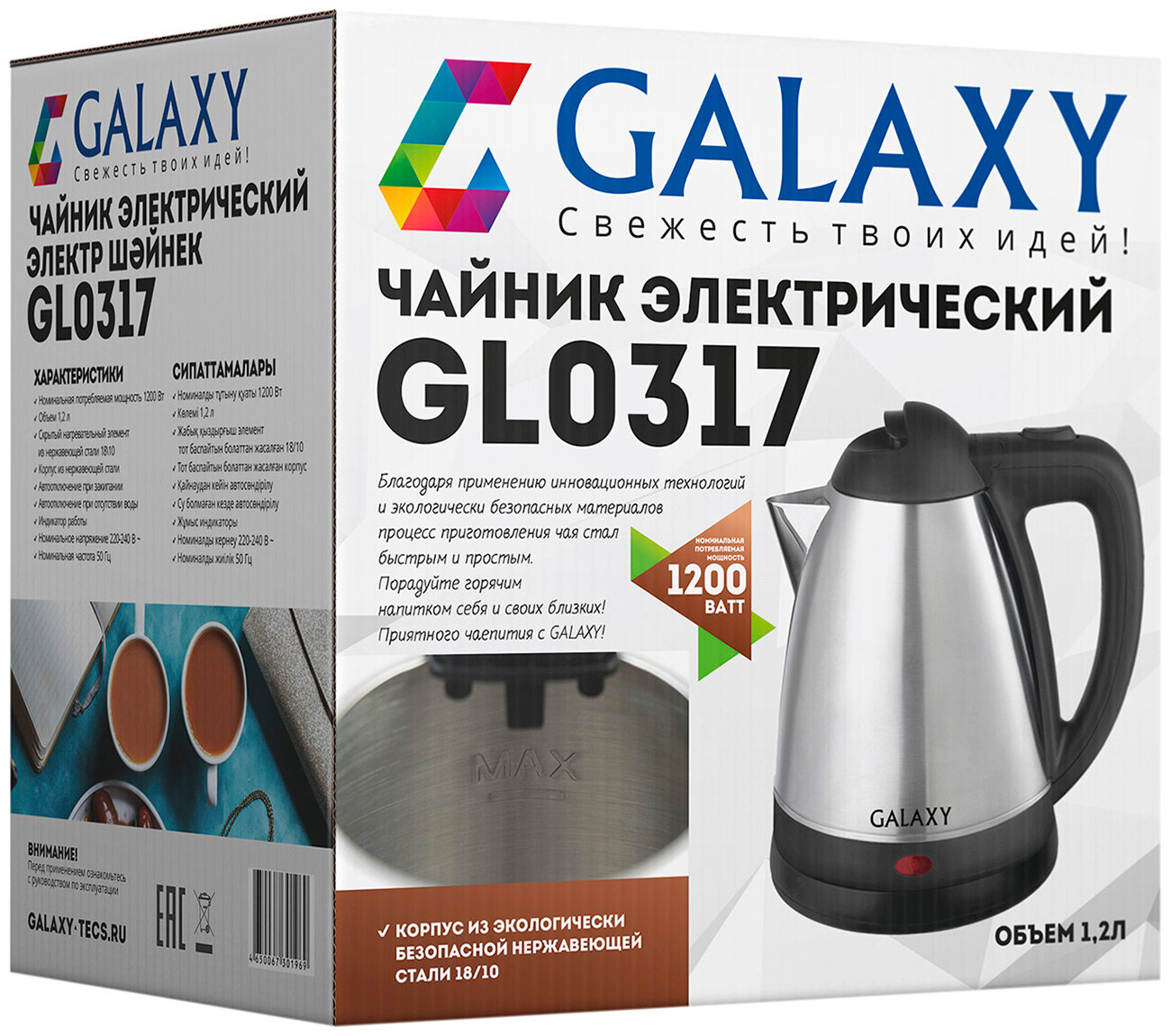 Galaxy Чайник Galaxy GL0317, электрический, серебристый (1200Вт, 1.2л) (ret) 1 257 ₽