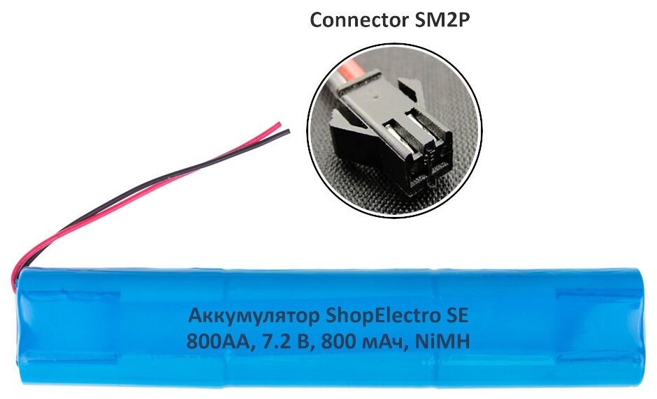 Аккумулятор ShopElectro SE 800АА, 7.2 В, 800 мАч/ 7.2 V, 800 mAh, NiMH, с коннектором SM2P (2) информация: