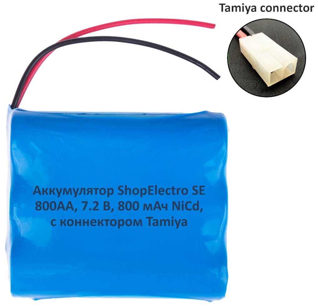 Аккумулятор ShopElectro SE 800АА, 7.2 В, 800 мАч/ 7.2 V, 800 mAh, NiCd, с коннектором Tamiya (3) информация: