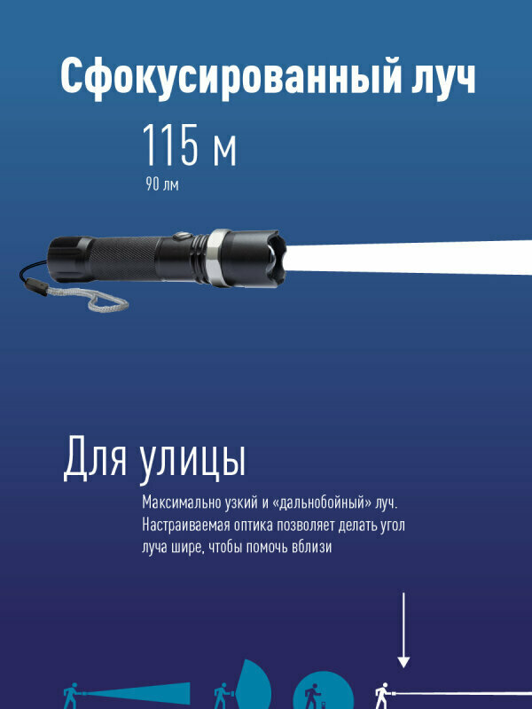 Отзывы на Фонарь ручной KOS112Lit аккум 3ВтLED линза/зум/Li-ion18650 1200mAh/анодированный алюминий/USB-шнур космос