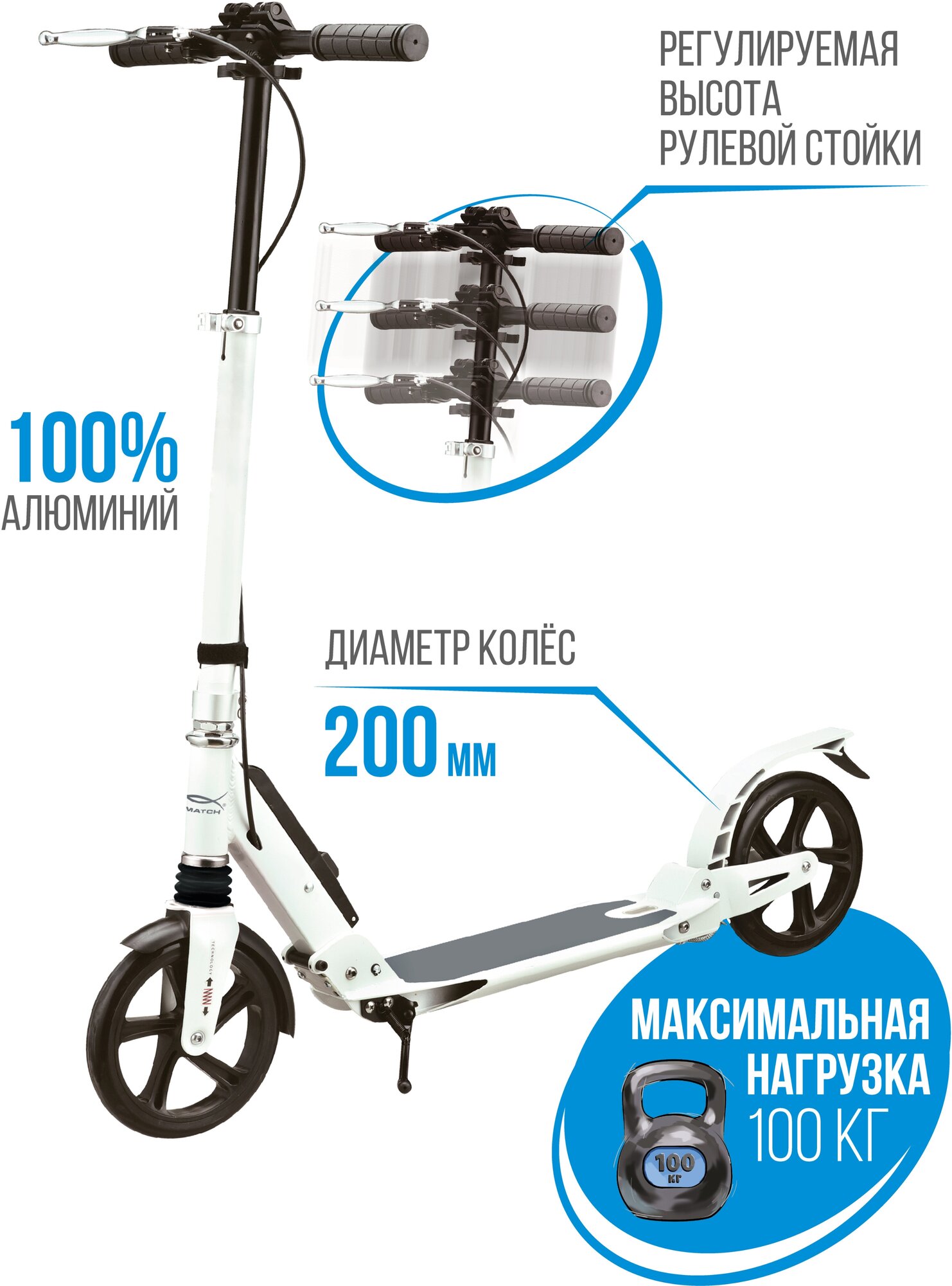 10 цен на Самокат X-Match ProTec, 100 % алюм., 200 мм PU, 2 аморт., ручной тормоpз, склад. кнопкой автомат