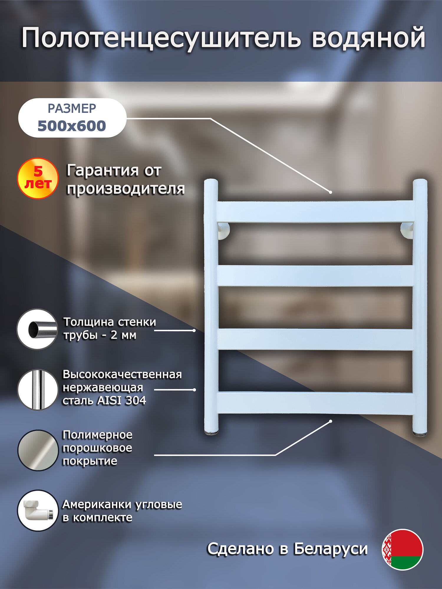 Полотенцесушитель Престиж 500*600/4 RAL 9016 информация: