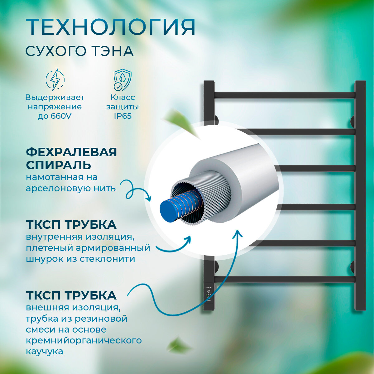 TERMINUS Полотенцесушитель электрический Terminus Хендрикс П6 500x596, ТЭН HT-1 300W, левый/правый
