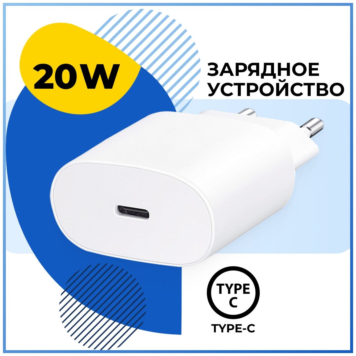 Сетевое зарядное устройство с быстрой зарядкой и разъемом Type-C / Адаптер питания для iPhone и Android/ Блок зарядки ЮСБ Тайп-Си для Эпл Айфон 20W информация: