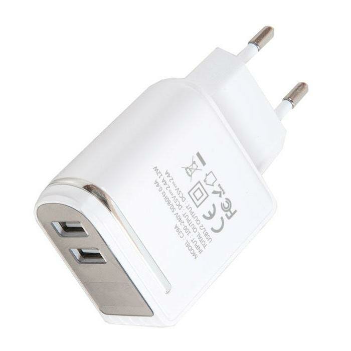 Зарядное устройство БП HOCO c39A LED экран, два порта USB, 5V, 2.4А, white, 6957531084907 информация: