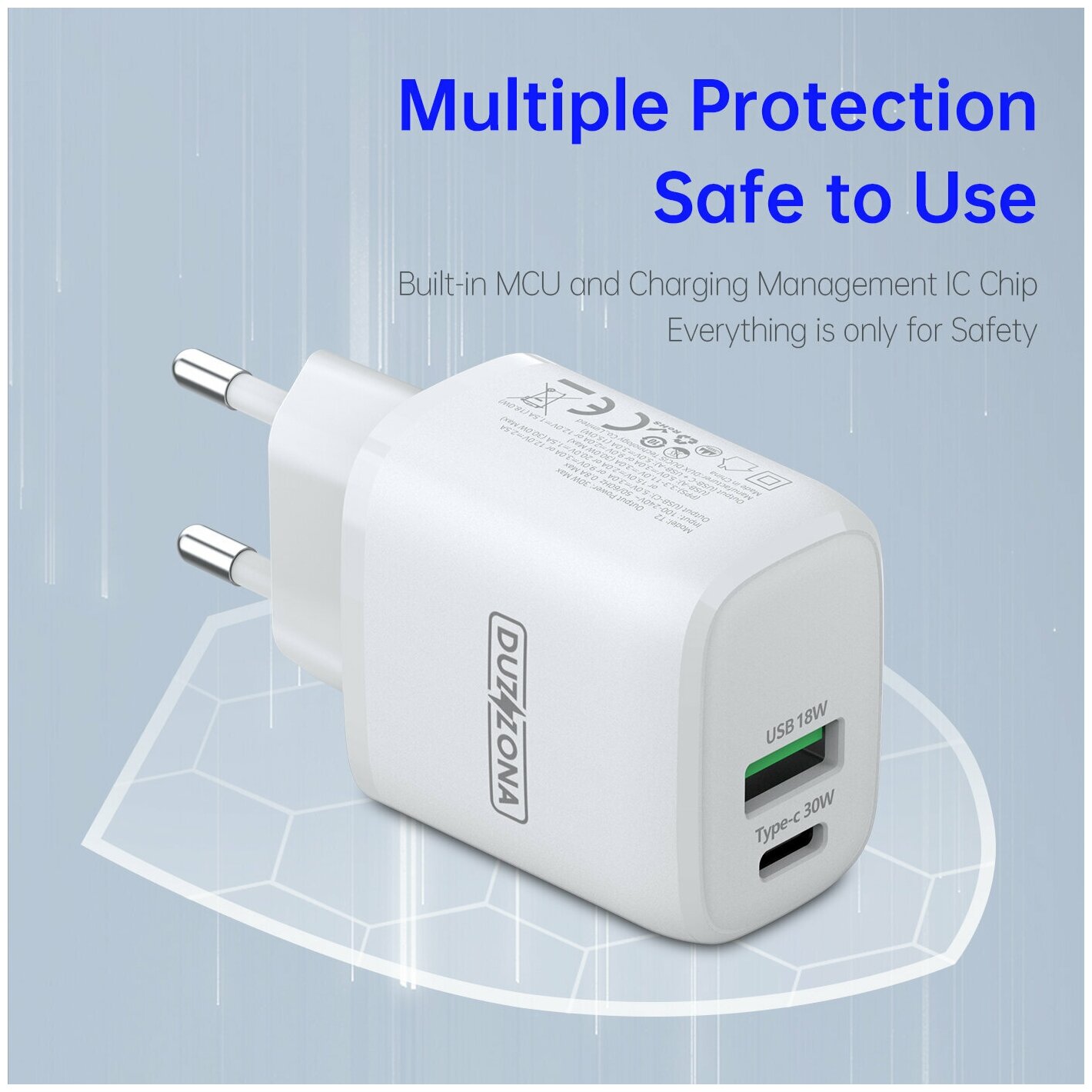 Сетевое зарядное устройство DUZZONA PD 30W 1 разъем Type-C, 1 разъем USB, T2 series, белый информация: