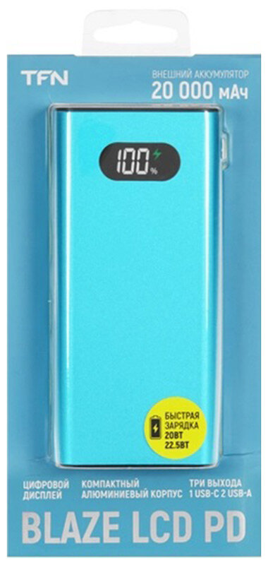 Внешний аккумулятор TFN 20000 mAh Blaze LCD PD 22.5W blu информация: