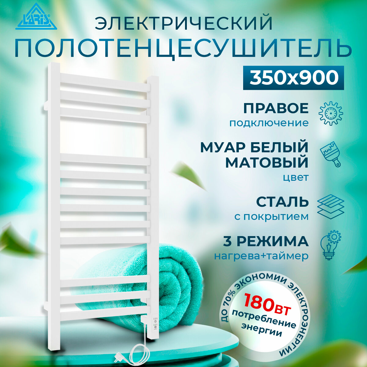 10 цен на Полотенцесушитель электрический Laris Астор ЧК12 350х900 Э правое подключение RAL 9016 (белый матовый муар)