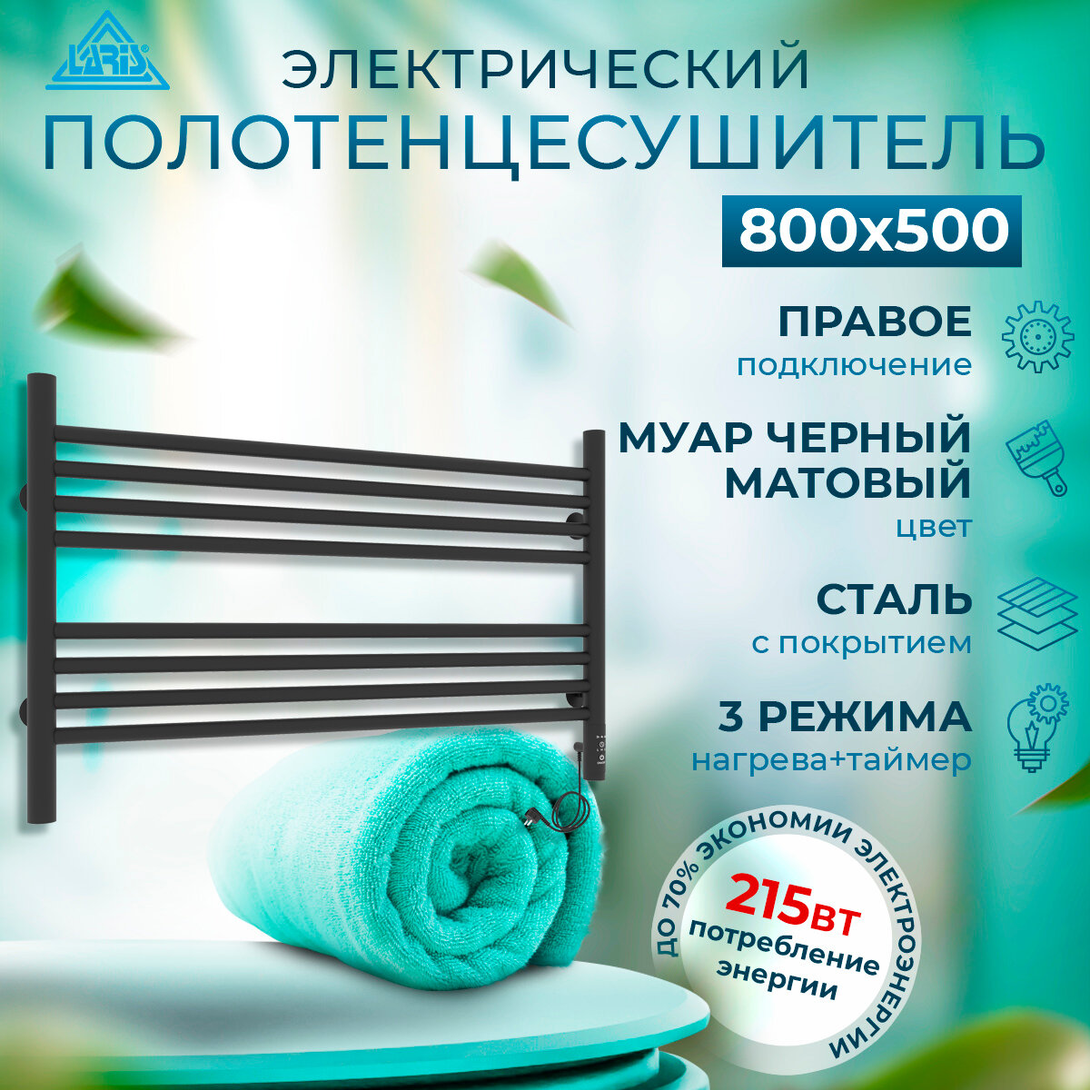 Полотенцесушитель электрический Laris Оливия ЧКЧ8 800мм 500мм правое подключение RAL 9005 (черный матовый муар) с таймером и терморегулятором информация: