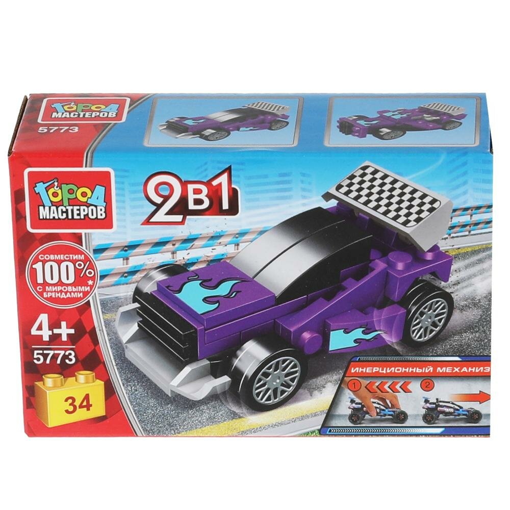 Конструктор Спорткар 2в1 с инерцией, 34 дет. Город Мастеров 5773-BY информация: