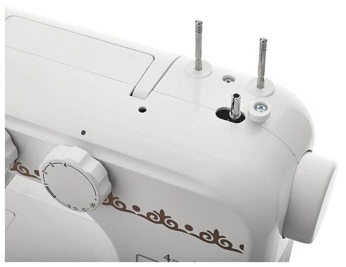 | Подробная комплектация | Лапка универсальная. Лапка для выметывания петли. Лапка для молнии двухсторонняя. Лапка для пуговиц. Направитель для потайного шва. Набор игл. Двойная игла. Вспарыватель/щёточка для чистки. Отвертка. Шпульки 4 шт. Мягкий чехол. Педаль. Инструкция на русском языке. |