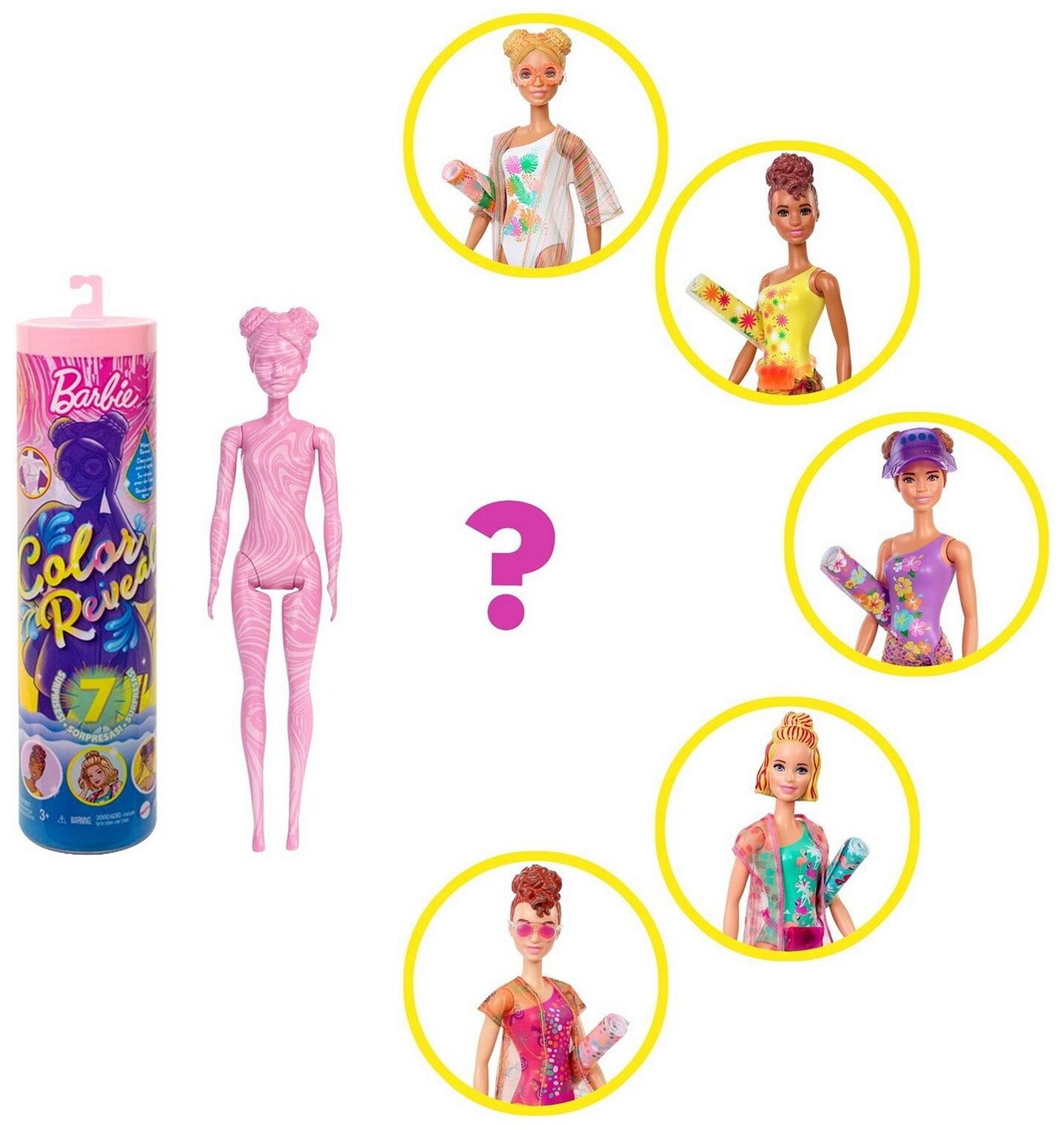 | Дополнительная информация | куклы Барби имеют различные комбинации цвета глаз, волос и декора купальника |