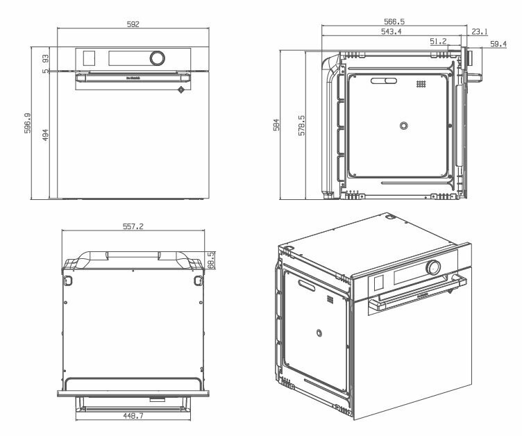 Духовой шкаф встраиваемый LEX EDM 077 C IV, 60 см, с конвекцией, механические ручки, объем 60 л, аналоговый таймер, телескопические направляющие.