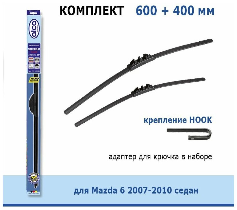 Комплект дворников Alca Super Flat 600 мм + 400 мм Hook для Mazda 6 2007-2010 седан информация: