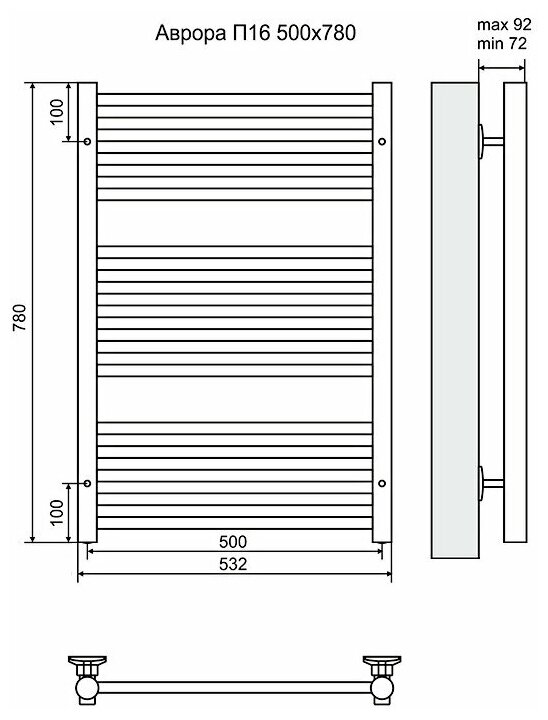 Полотенцесушитель Terminus Стандарт Аврора П16 500/780 (5+6+5) матрица(-) информация: