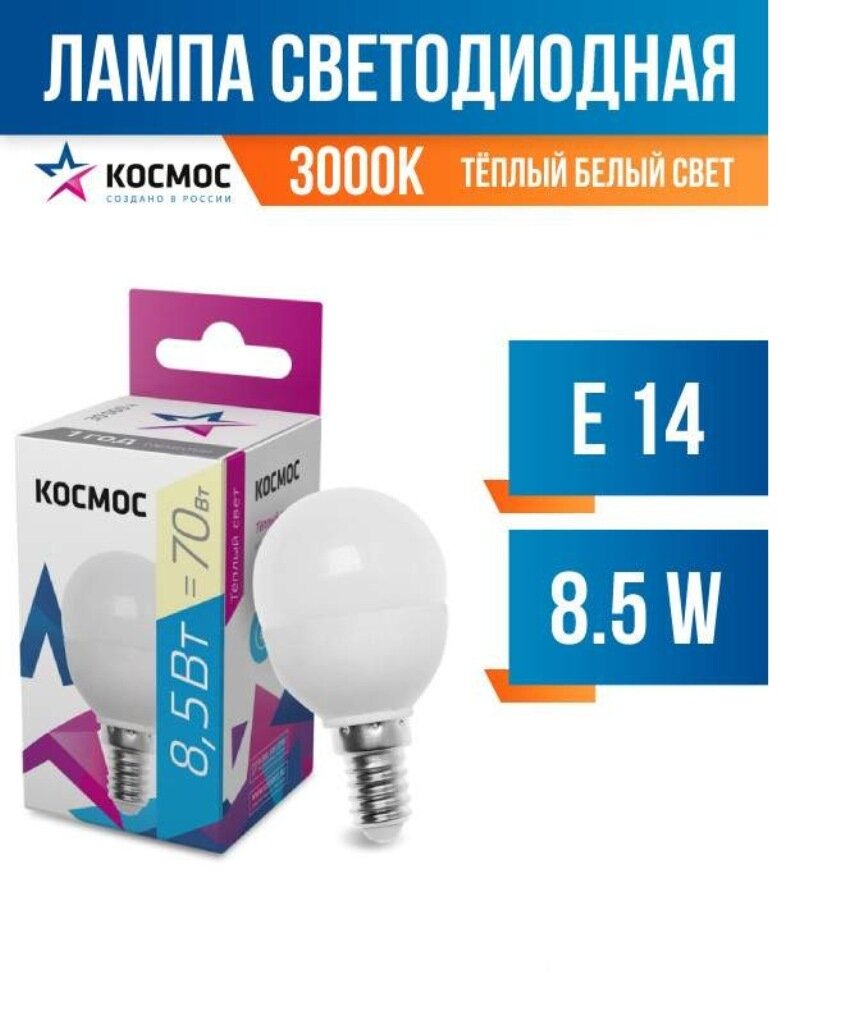 10 цен на Лампа светодиодная GL45 8.5Вт 220В E14 3000К Космос LkecLED8.5wGL45E1430