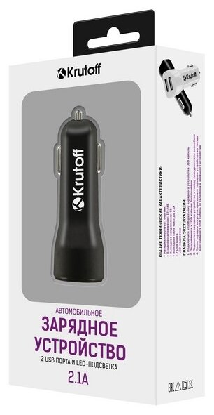 Krutoff АЗУ CCH-01 2xUSB, 2.1A (black) информация: