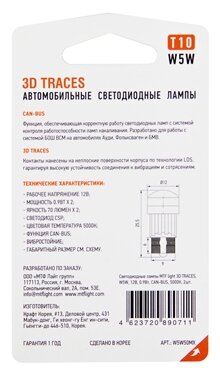 10 цен на Светодиодные лампы MTF light 3D TRACES W5W, 12В, 0.9Вт, CAN-BUS, 5000K, 2шт. Корея.