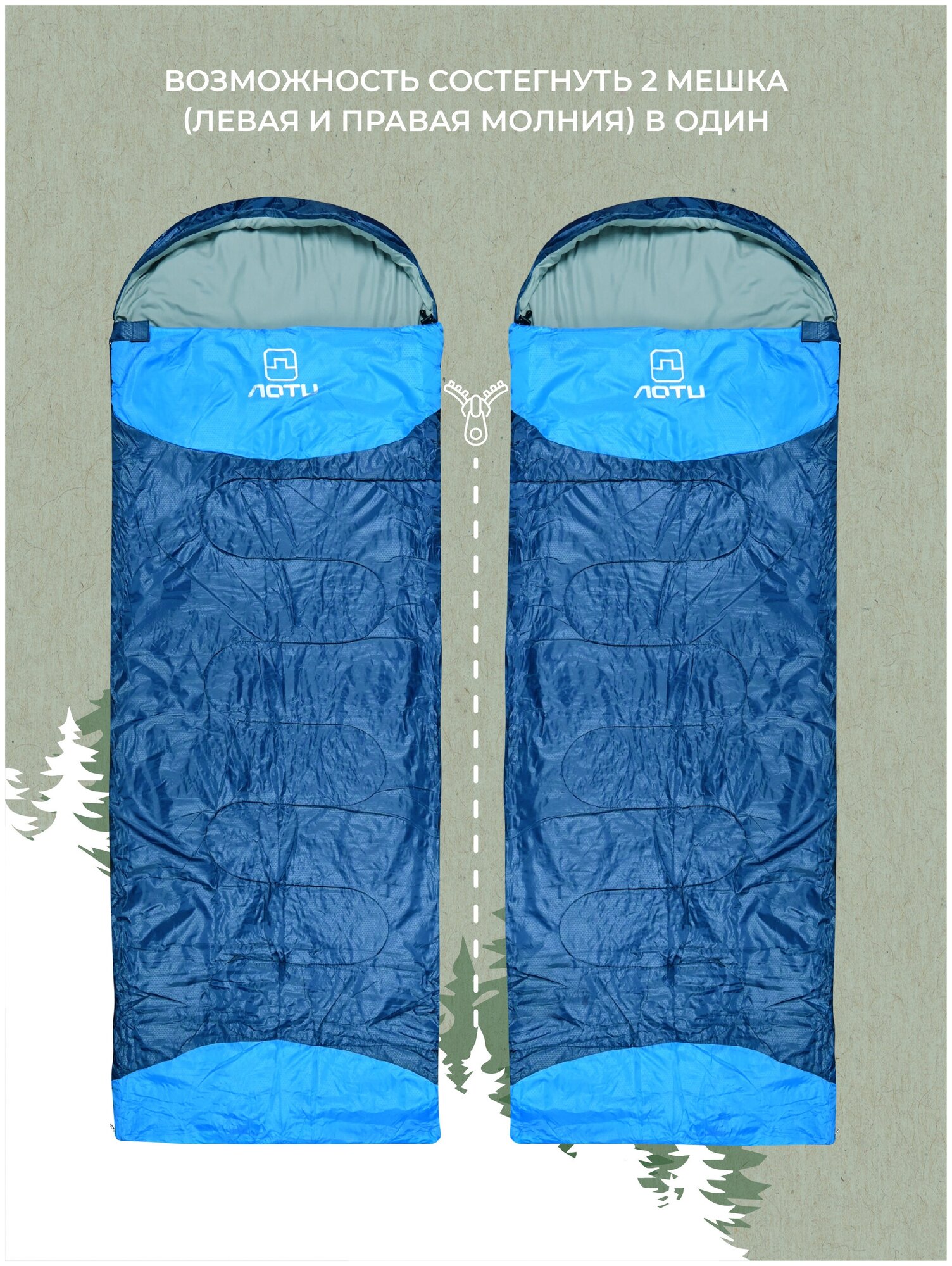 Водонепроницаемый спальный мешок демисезонный AT6101 (правый) 1,8 кг 190х75 см с подголовником 30 см синий / Одинарный спальник туристический информация: