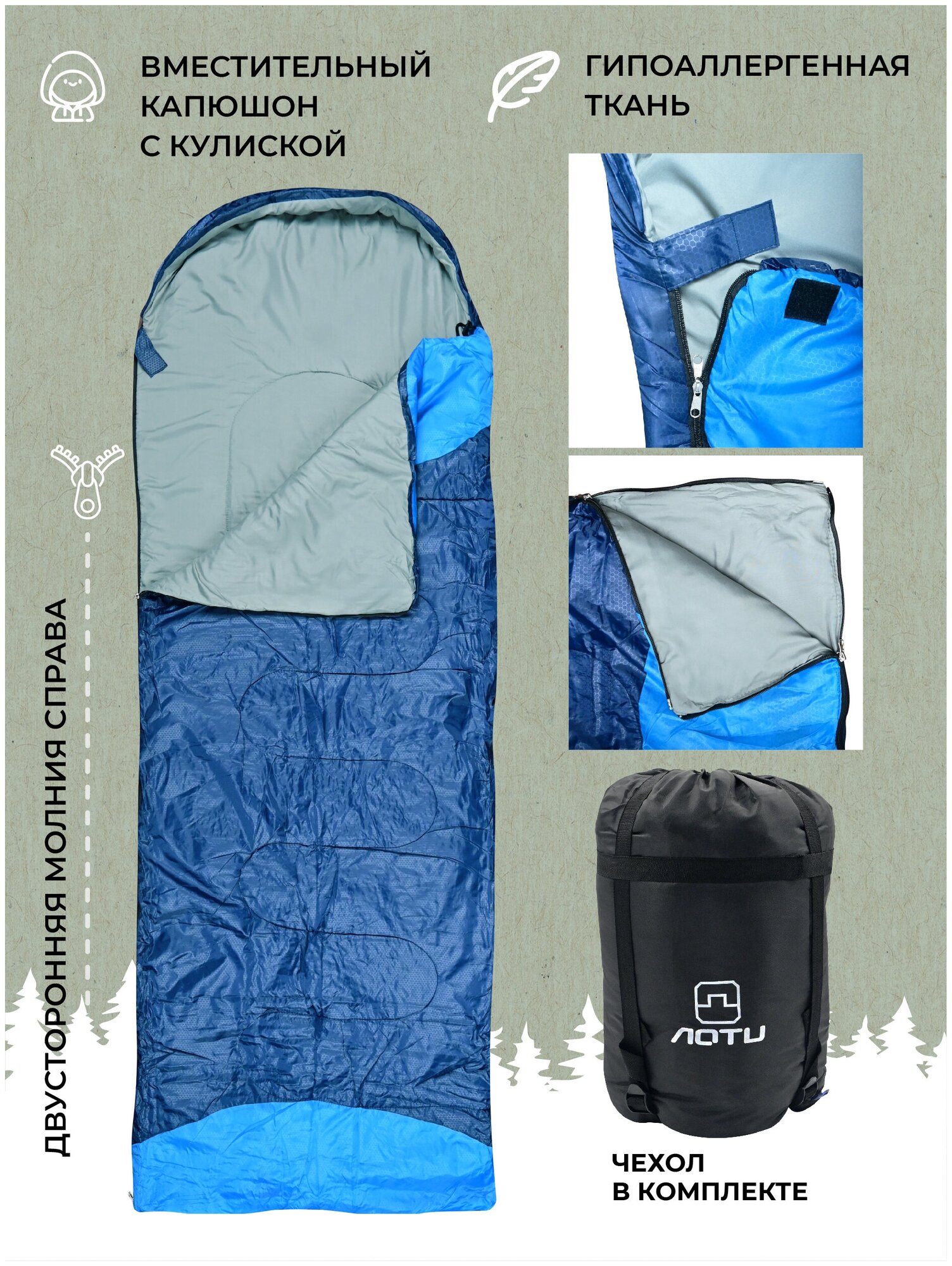 10 цен на Водонепроницаемый спальный мешок демисезонный AT6101 (правый) 1,8 кг 190х75 см с подголовником 30 см синий / Одинарный спальник туристический