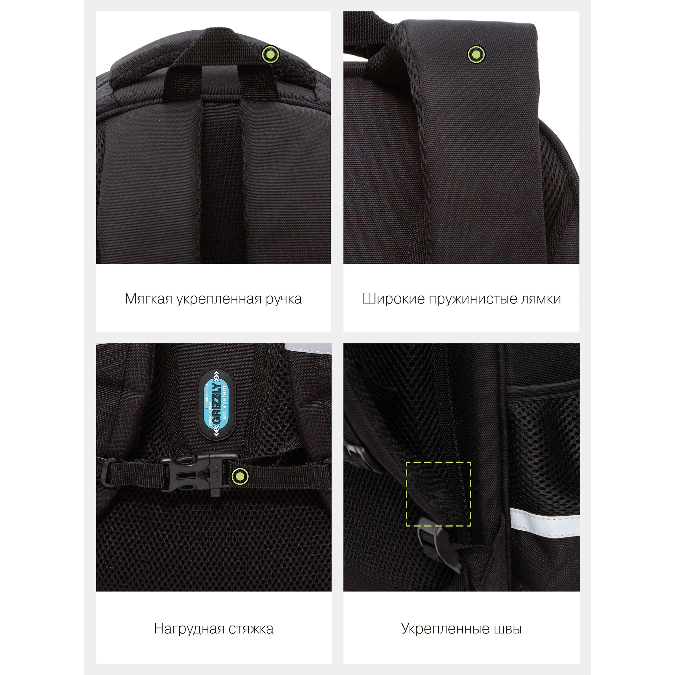 Ранец школьный формованный GRIZZLY с анатомической спинкой на ножках, для мальчика RAz-287-11/1