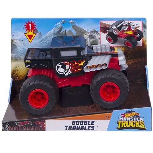 Монстр-трак Hot Wheels Monster Trucks Double Troubles Bone Shaker (GCG06/GCG07) 1:24, черный/красный