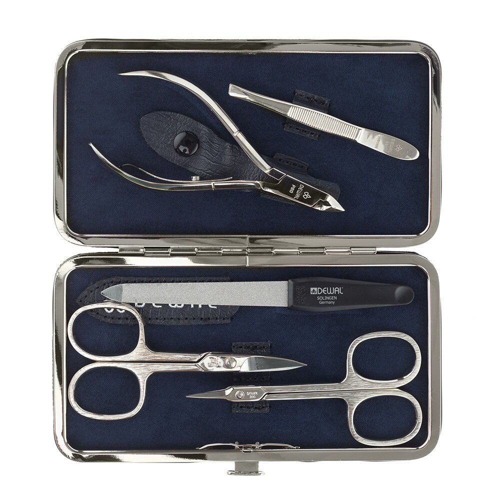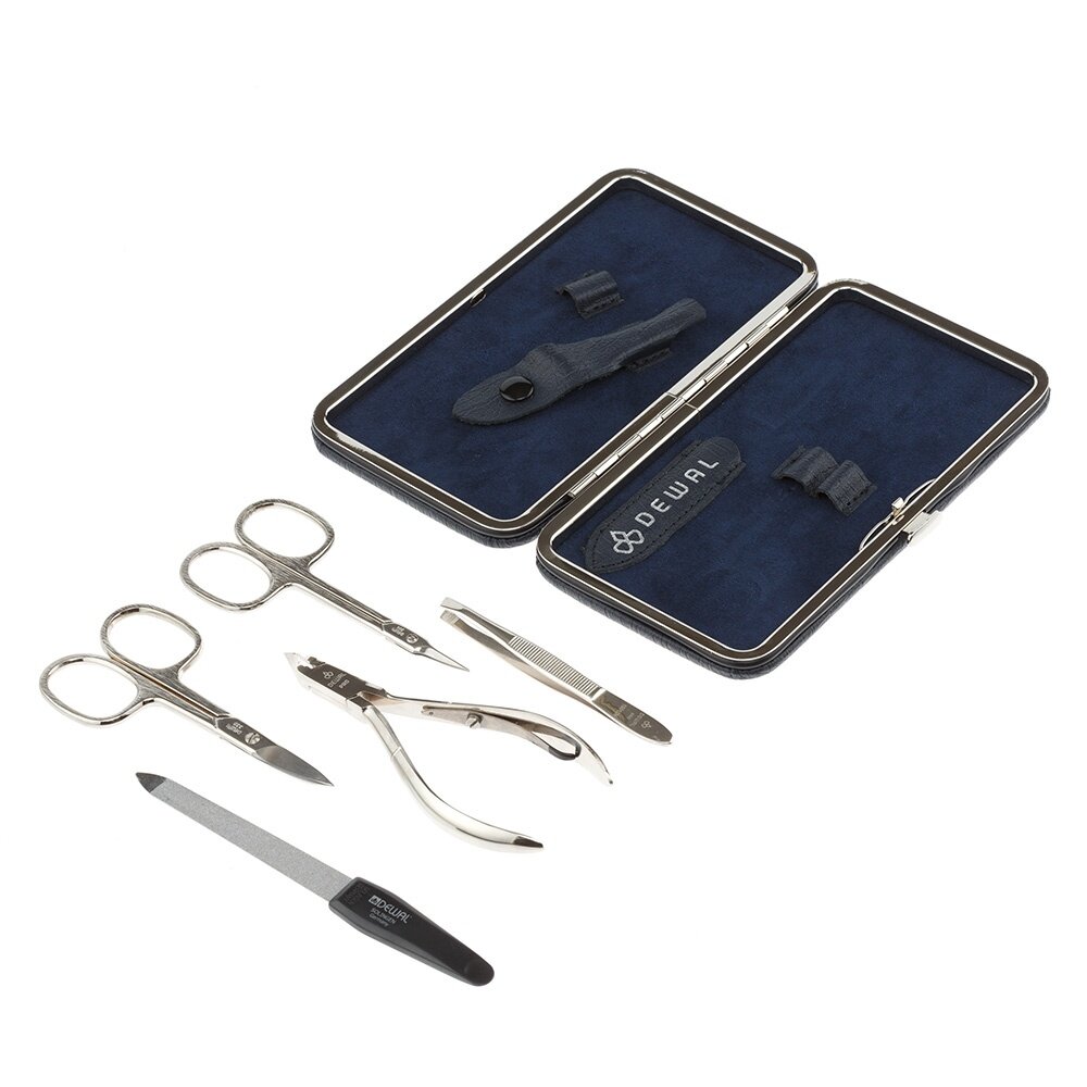 10 цен на Маникюрный набор DEWAL, 5пр. Футляр: натуральная кожа, цвет синий DEWAL MR-903BLUE
