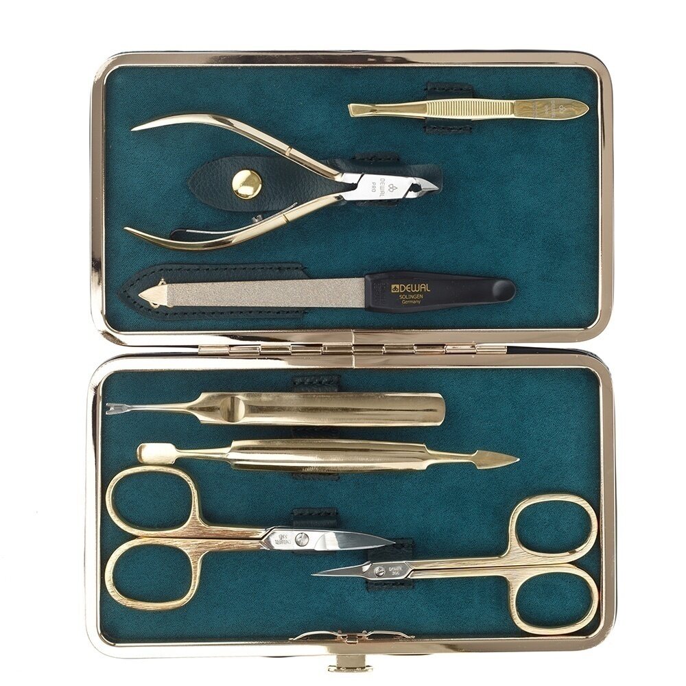 10 цен на Маникюрный набор DEWAL, 7пр. Футляр: натуральная кожа, цвет зеленый DEWAL MR-905GREEN