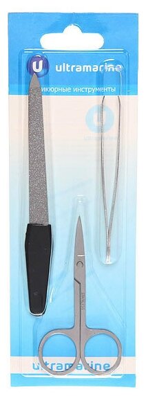 Маникюрный набор на блистере, 3 предмета «Ультрамарин» (ножницы, пинцет и пилка металлическая) информация: