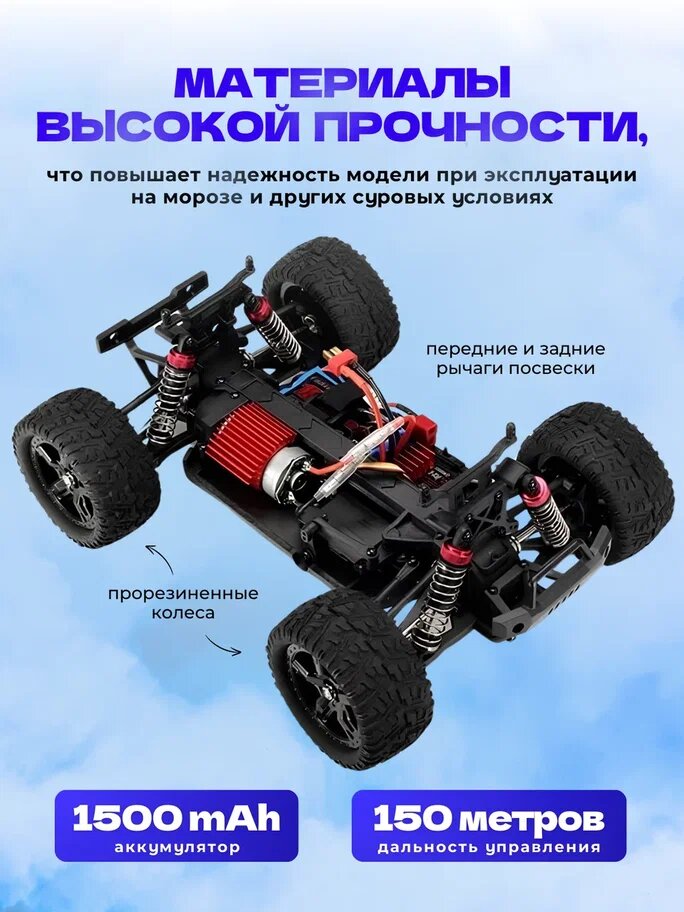 Комплектация | собранная модель автомобиля, аппаратура управления 2.4GHz, аккумулятор Li-Ion 7.4V 1500mAh, зарядное устройство для аккумулятора, инструкция |