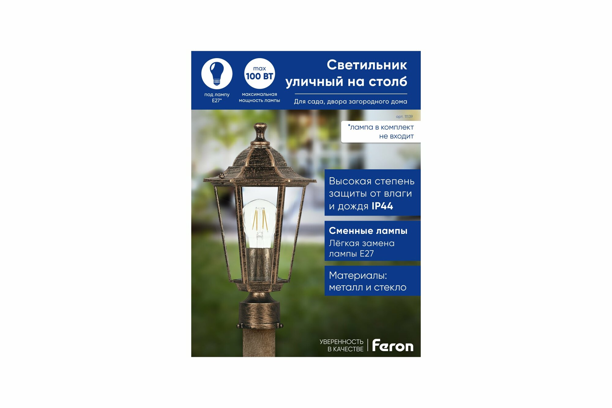 Feron Садово-парковый светильник PL171 11339, E27, 60 Вт