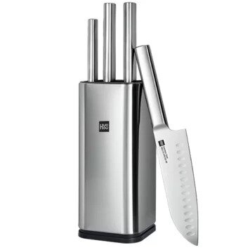 Набор стальных ножей (3 ножа ножницы подставка) Huo Hou Stainless Steel Kitchen Knife Set (HU0095), серебристый
