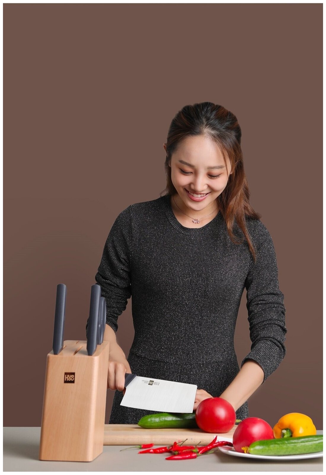 Набор стальных ножей Huohou 6-Piece Kitchen Knife Set Lite (HU0057), (4 ножа + ножницы + деревянная подставка из бука) русская версия!!!, черный 3 810 ₽