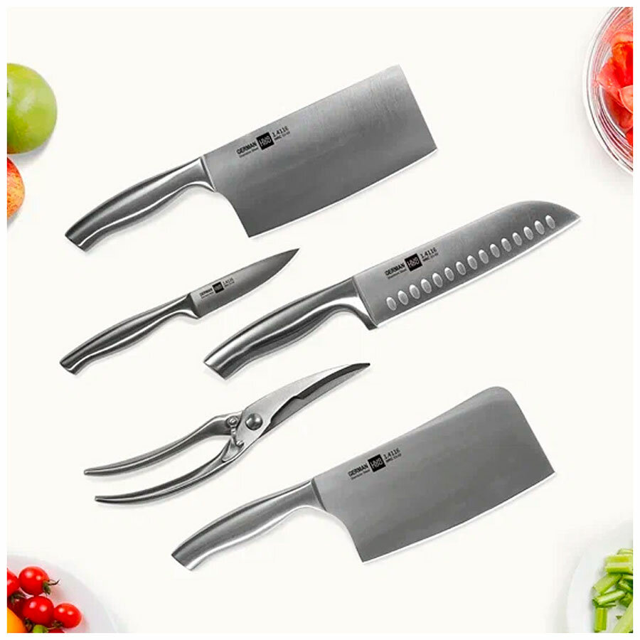 Набор стальных ножей (4 ножа + ножницы + подставка) HuoHou 6-Piece Stainless Steel Kitchen Knife Set (HU0014), русская версия, серебристый 4 990 ₽