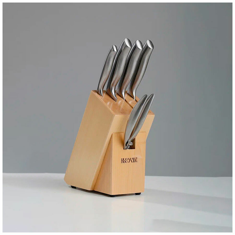 Набор стальных ножей Huohou 6-Piece Stainless Steel Kitchen Knife Set (HU0014), (4 ножа + ножницы + подставка) русская версия!!!, серебристый