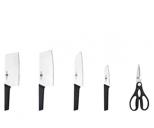| Комплектация | 4 ножа, ножницы, подставка для хранения |