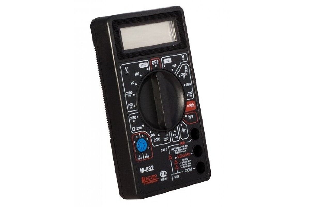Мультиметр M832, AC(0.1V.600V) DC(0.1mV.600V/2mA.10A) R(0.1.2МОм), диод-тест, 2 изм. в сек