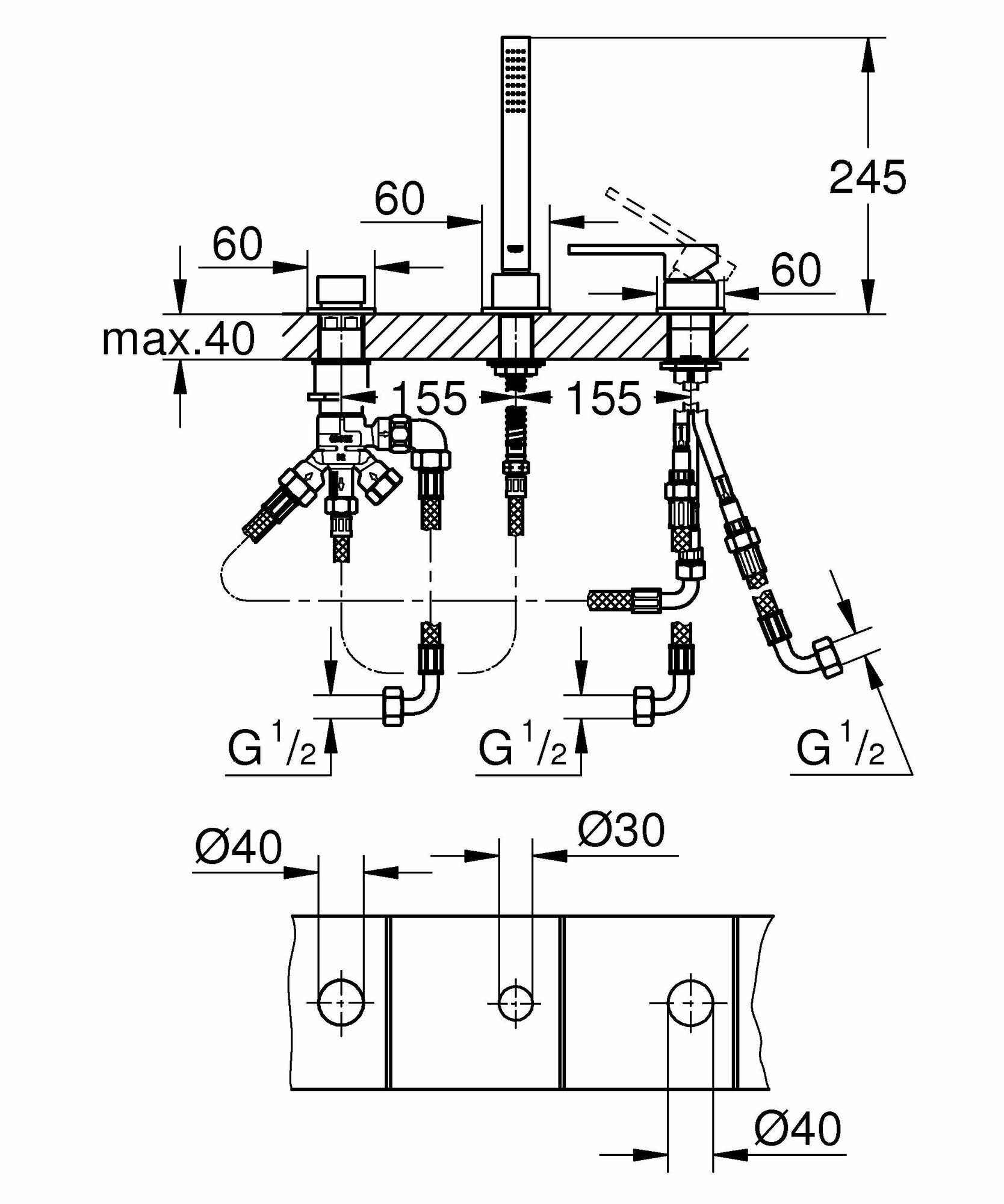 Смеситель для ванны на 3 отверстия GROHE Plus (23845003) информация: