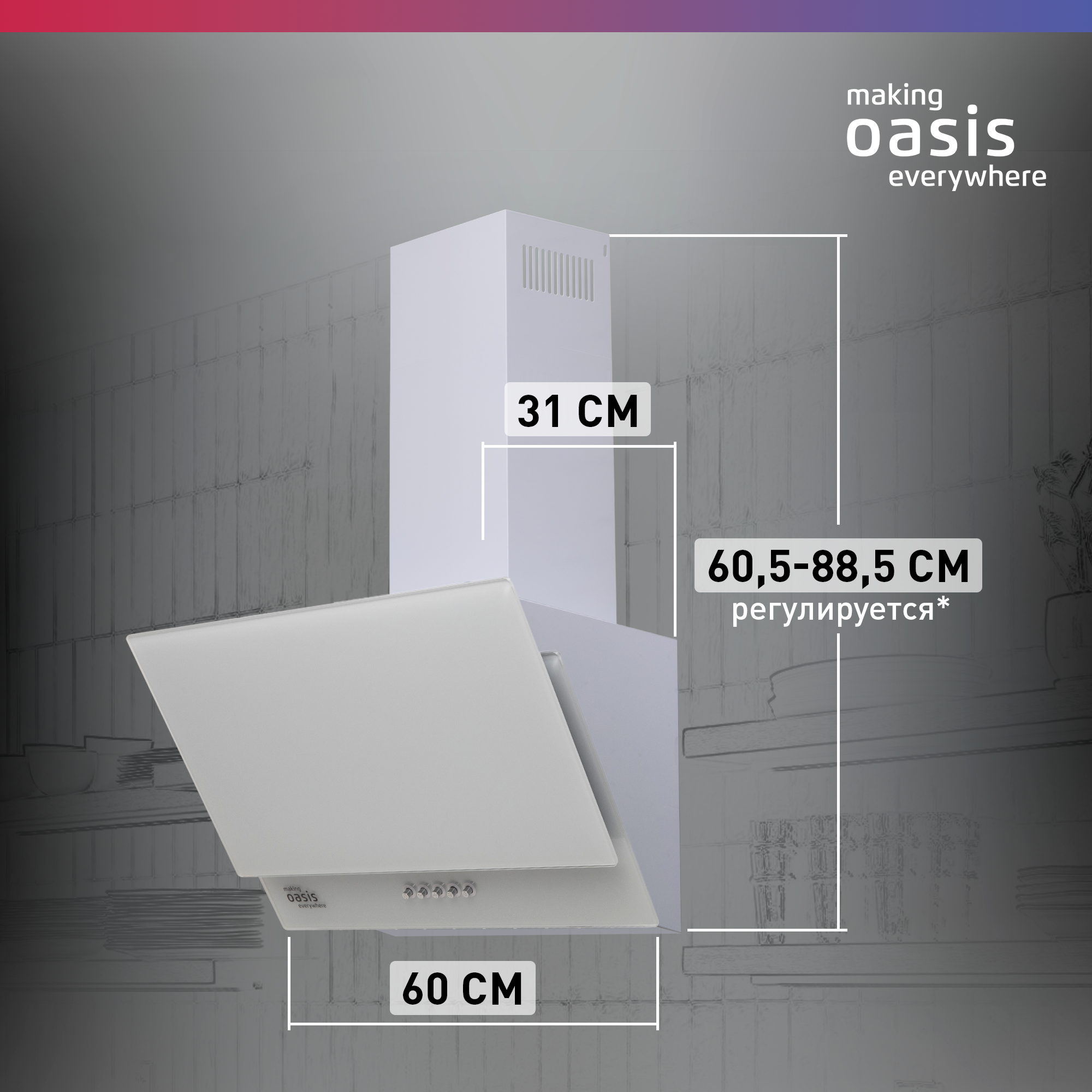 Вытяжка каминная наклонная making OASIS everywhere NC-60W (FR) белый (850 м³/ч) информация: