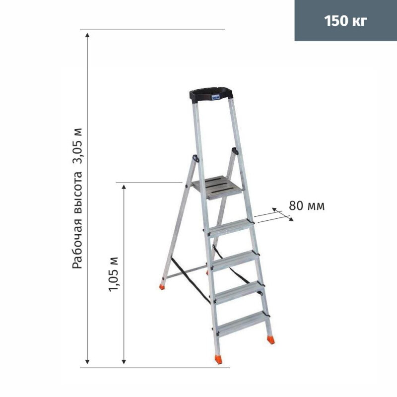 Стремянка складная Krause SAFETY 5 ступеней с полочкой 128959 , 1 шт. информация: