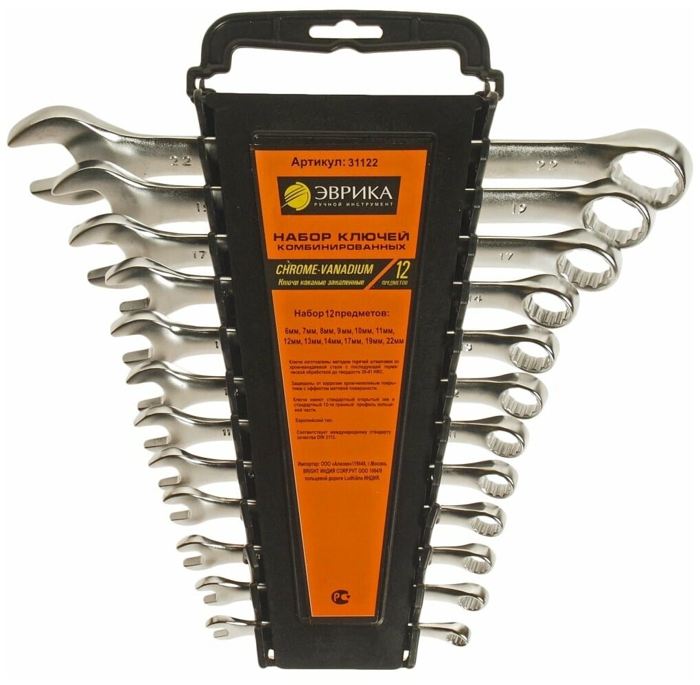 Набор ключей комбинированных 6-22мм сатинированных холдер 12 предметов эврика