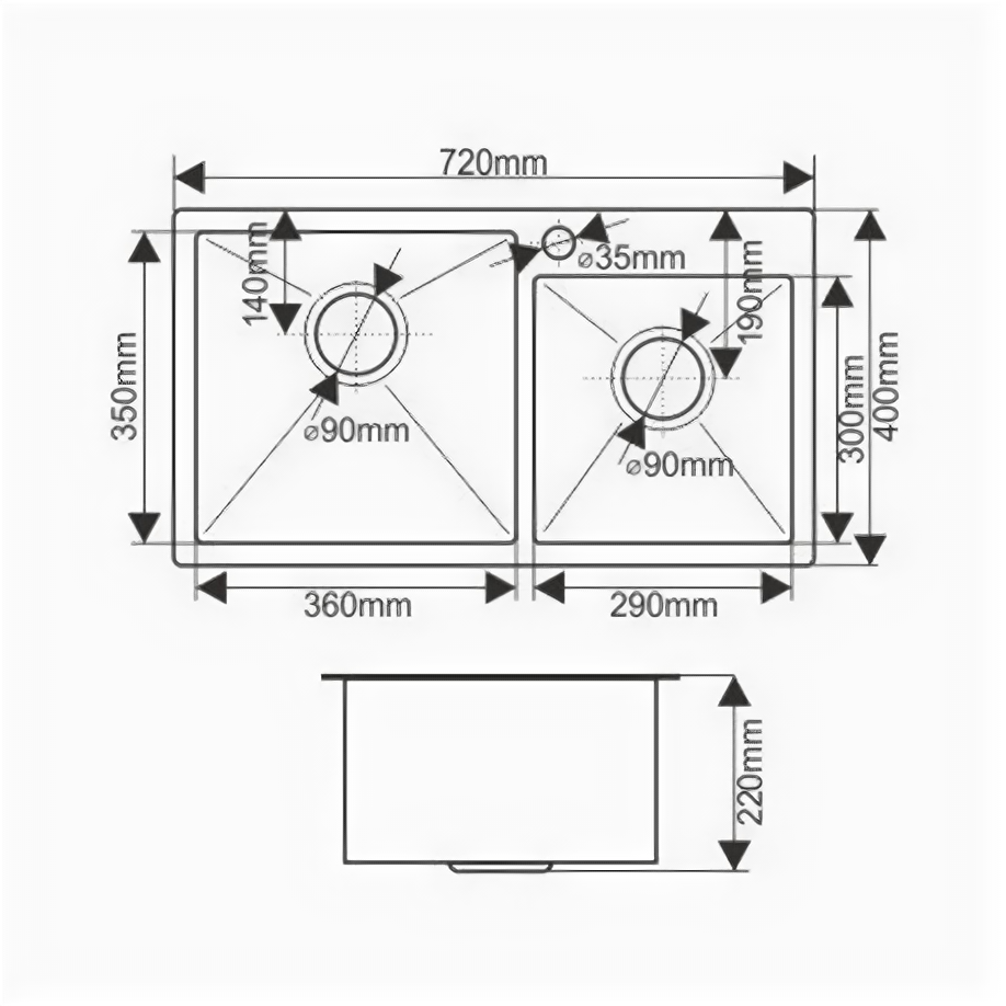 Мойка 7240 MELANA ProfLine 3,0/220 сатин 2-я чаша, врезная прямоугольная S7240H информация: