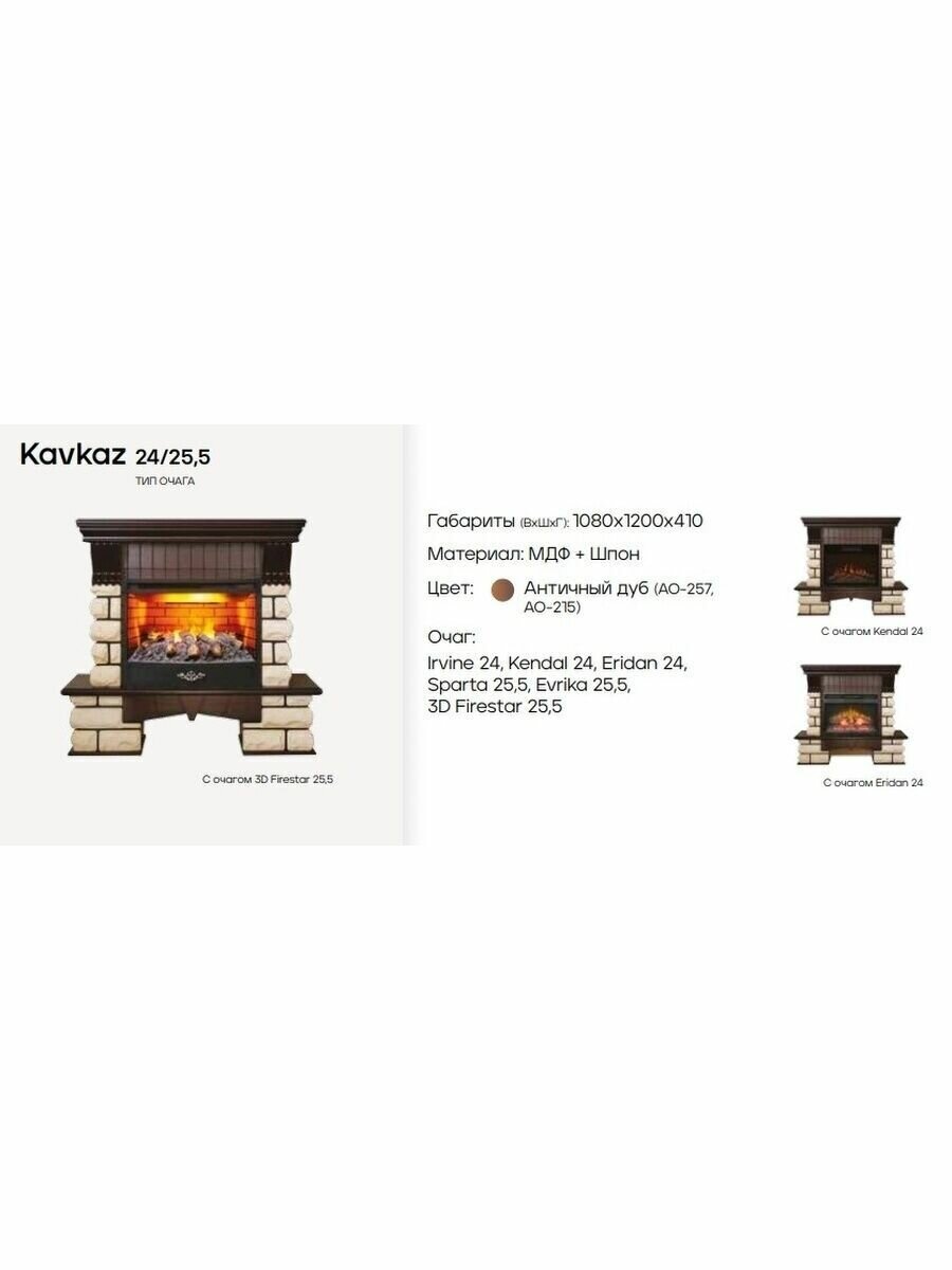 Электрический камин Real Flame Kavkaz 25,5/24 АО-257/215 с очагом Eridan 24 информация: