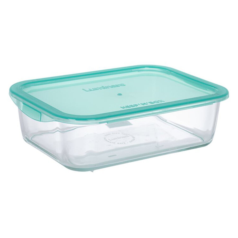 Контейнер прямоугольный Luminarc KEEP'N'BOX стеклянный, крышка на защелках, бирюза, 820мл