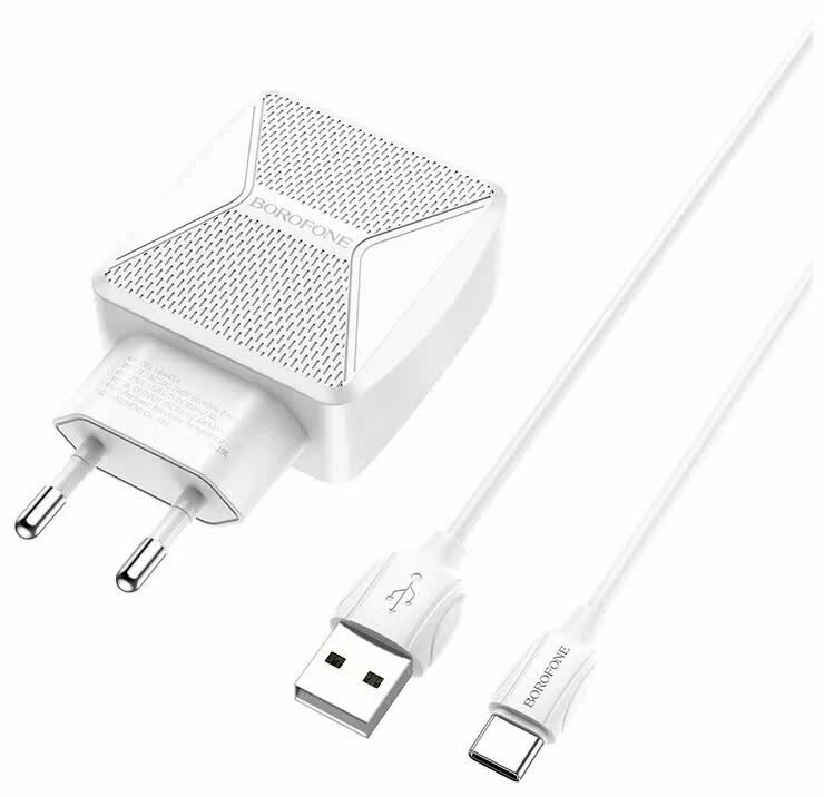 10 цен на Сетевое зарядное устройство+кабель Type-C Borofone BA45A Max Power, 2USB, 2.4A, белый (26384)