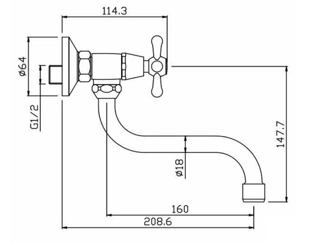 "ARGO" Смеситель для кухни настенный, DOM, 1/2" кер., информация: