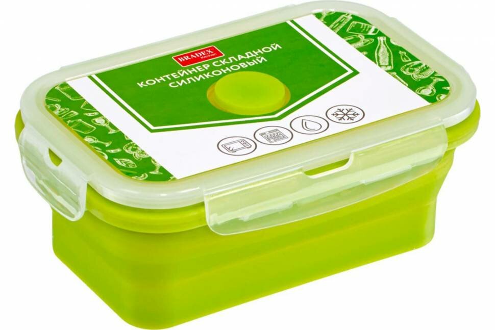 Складной силиконовый контейнер BRADEX 16х10см 540мл, зеленый TK 0482 информация: