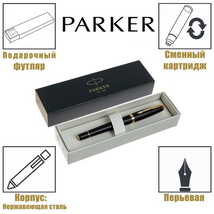 Отзывы на Parker Ручка перьевая Parker Urban Core F309 Muted Black GT F, корпус из нержавеющей стали, синие чернила, В подарочном пакете