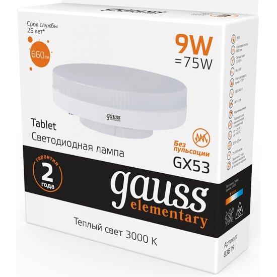 Светодиодная лампа Gauss 83819 LED Elementary GX53 9W 3000K информация: